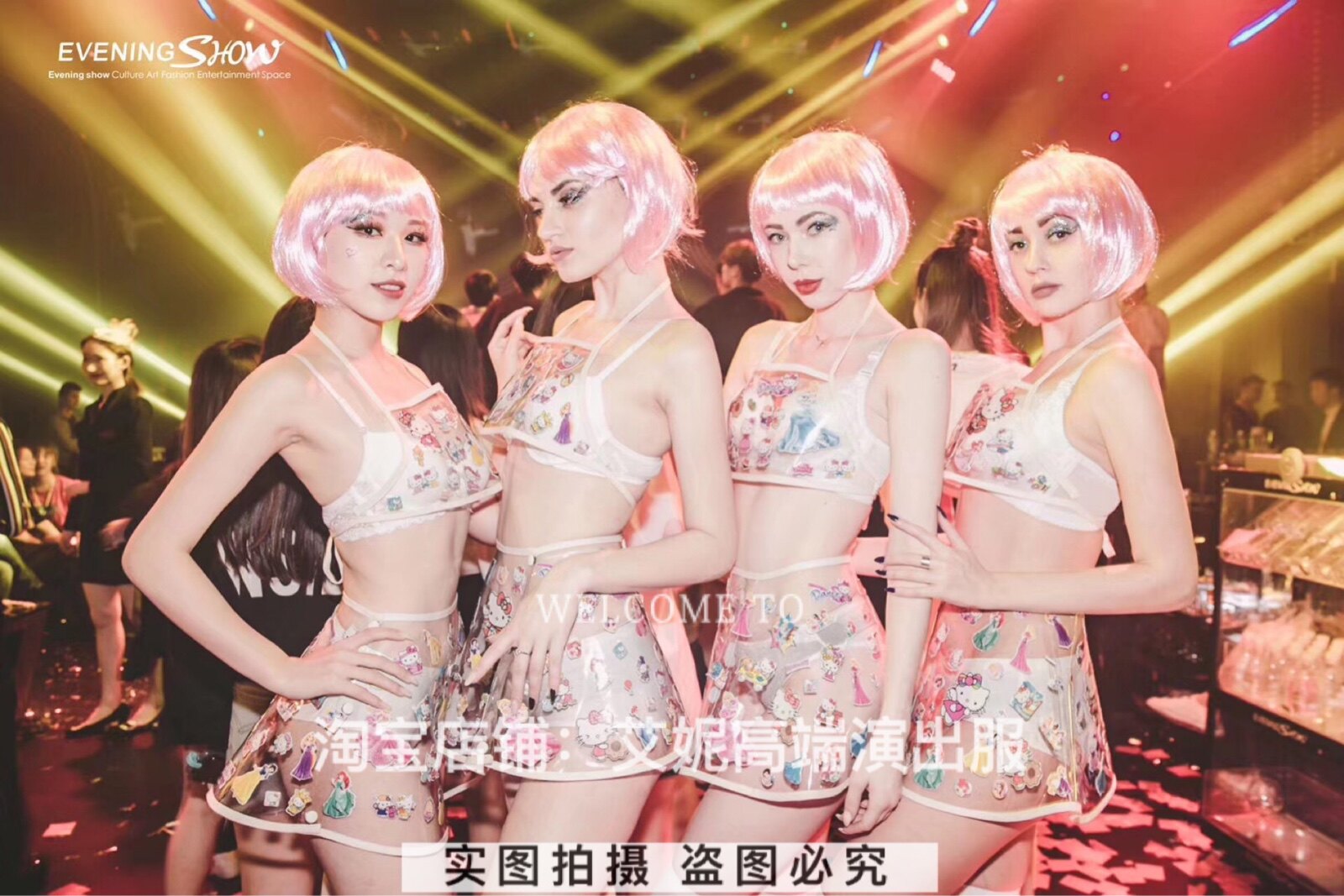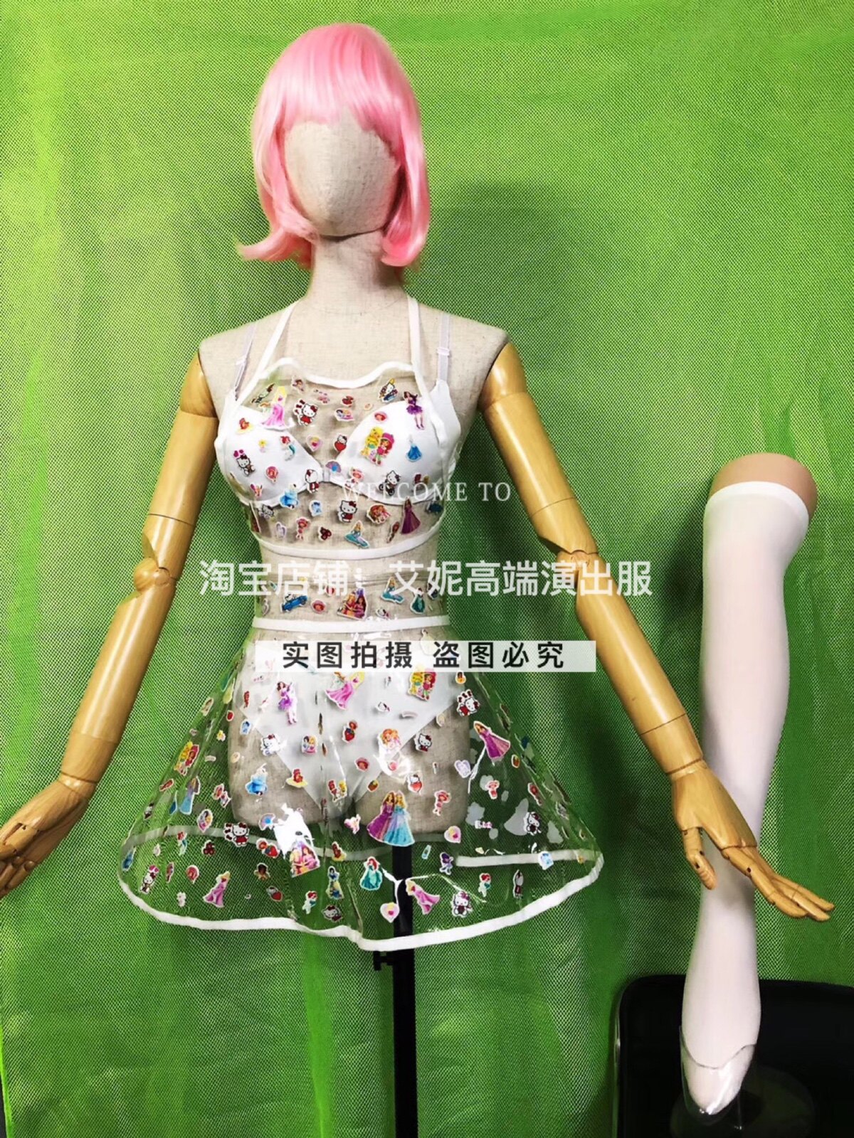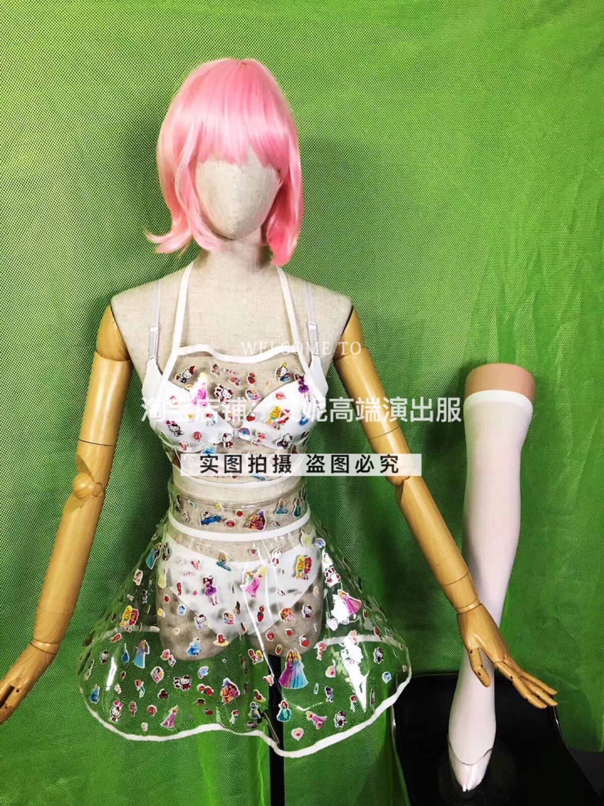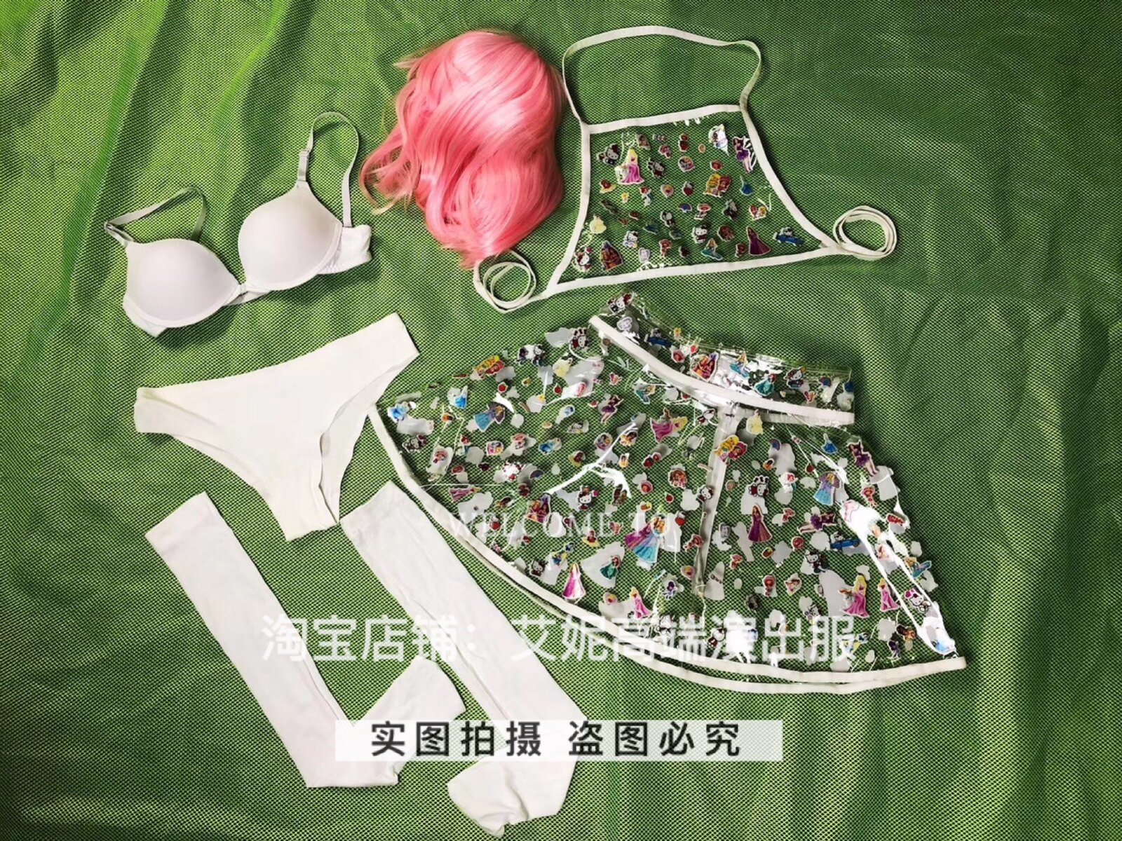 Transparent coat transparent skirt (skirt size) transparent two-piece bra shorts knee socks wig average size this costume does not support 7 days no reason to return