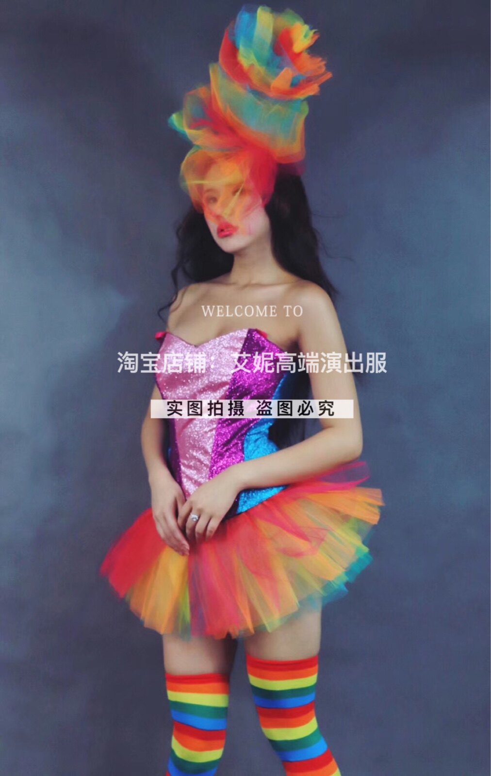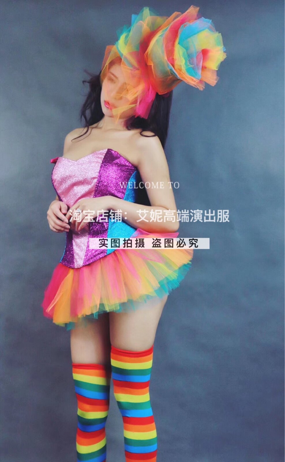 TT High-end Nightclub Bar Singer Djds Dance Team Gogo 61 Colorful Candy Puffy Skirt Suit Plays Out