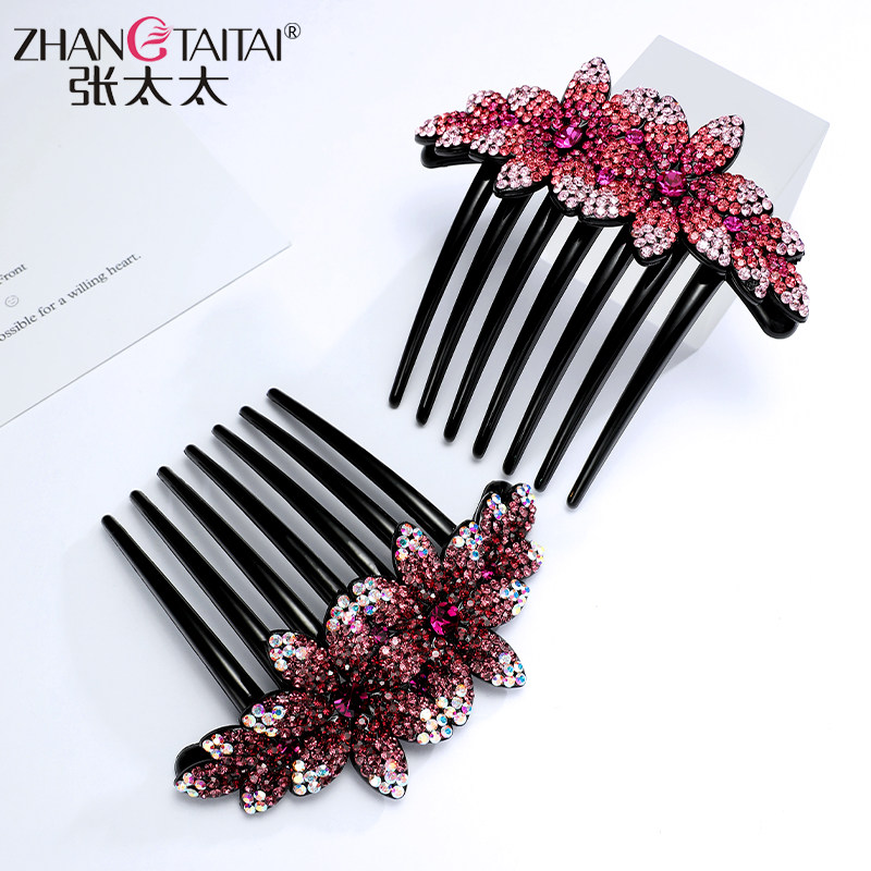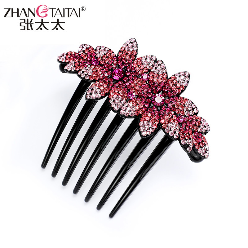 Mrs. Zhang's seven-tooth disc hair artifact insert comb hair comb large red hairpin plate head simple wind elegant rhinestone hairpin hairpin
