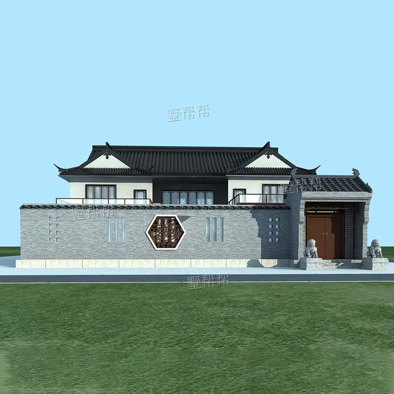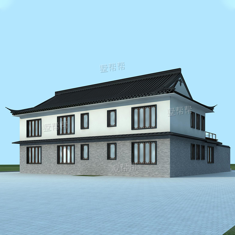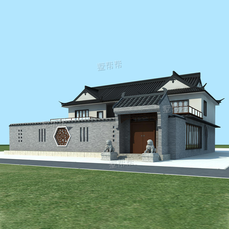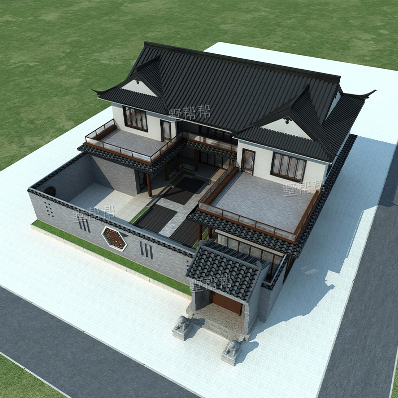 Build a house design drawing rural self-built house two-storey courtyard style Suzhou small set of 91099 villa gang
