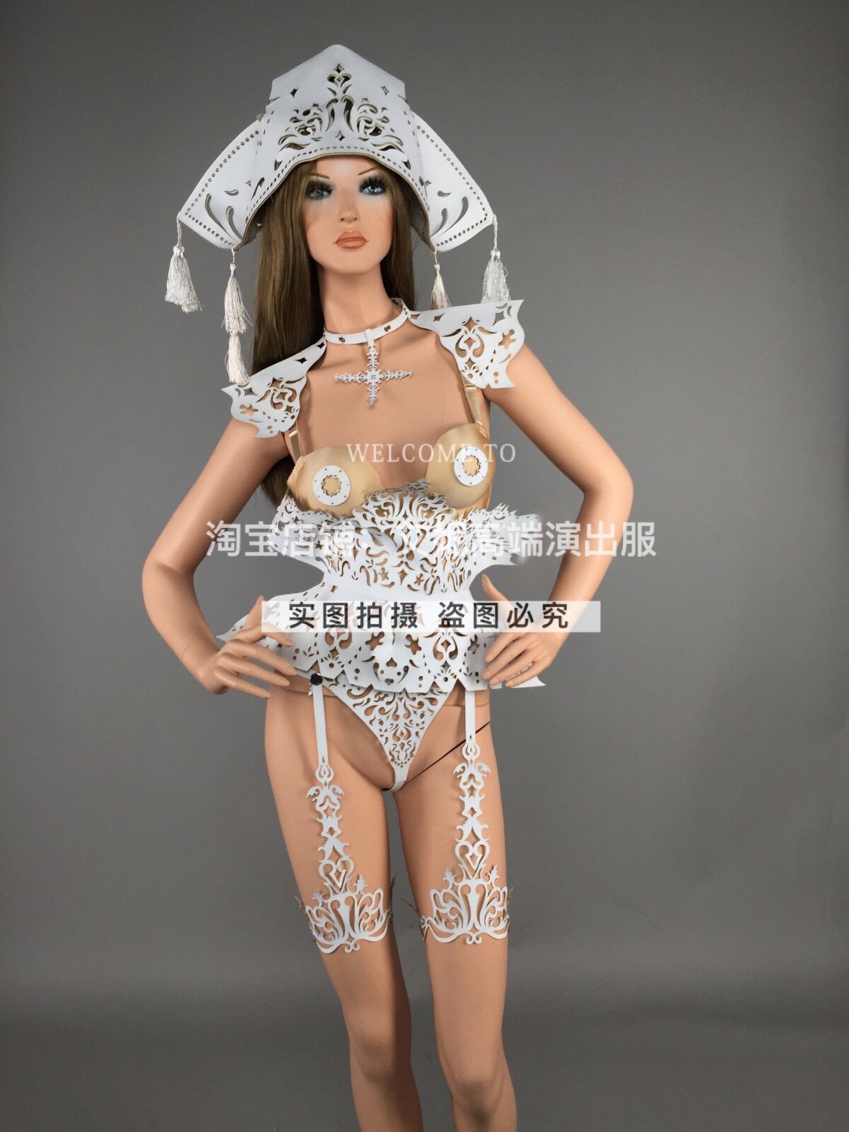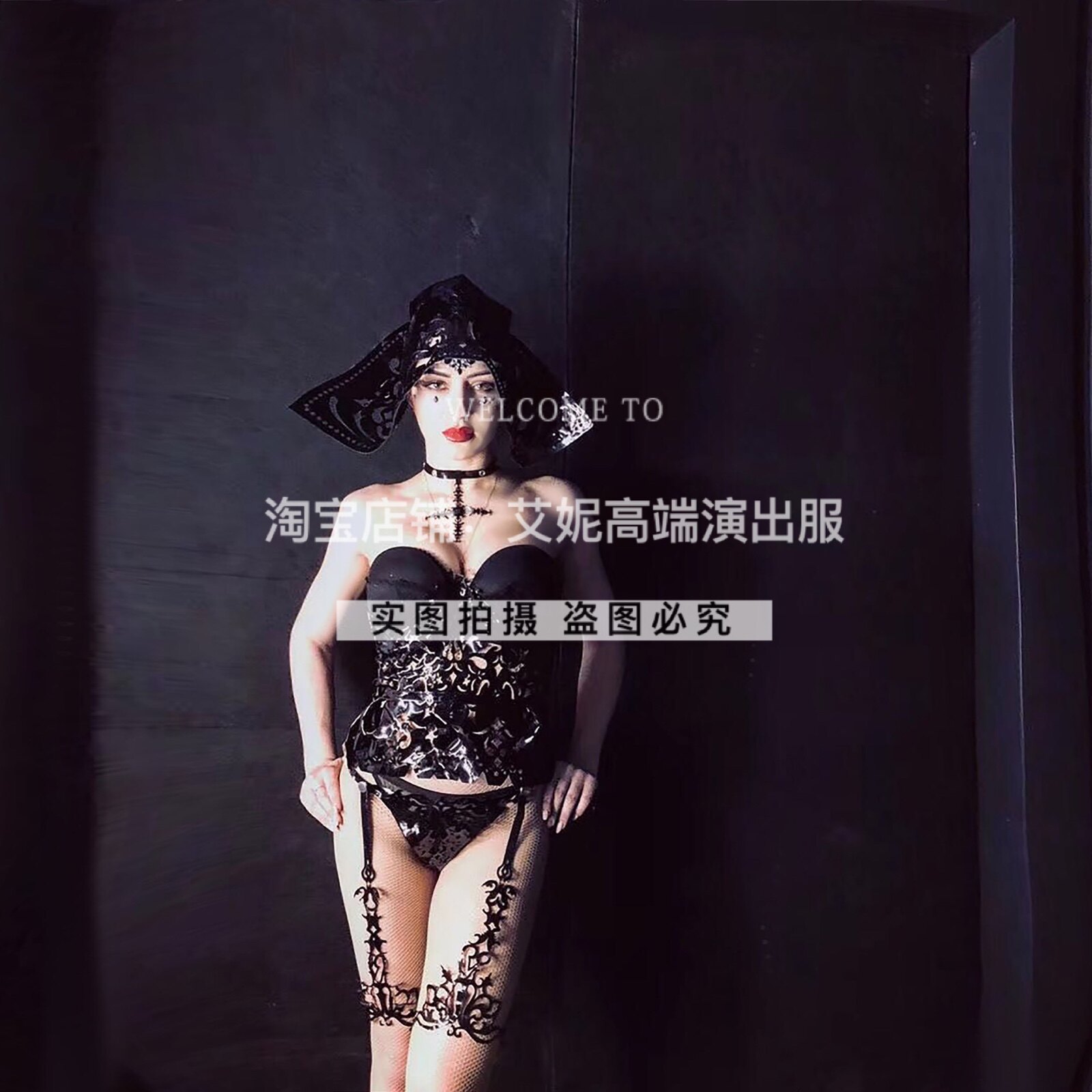 TT High-end Nightclub Bar Singer Djds Dance Team Gogo Hollowed-out Leather Headwear Two-piece Style Suit Play Out