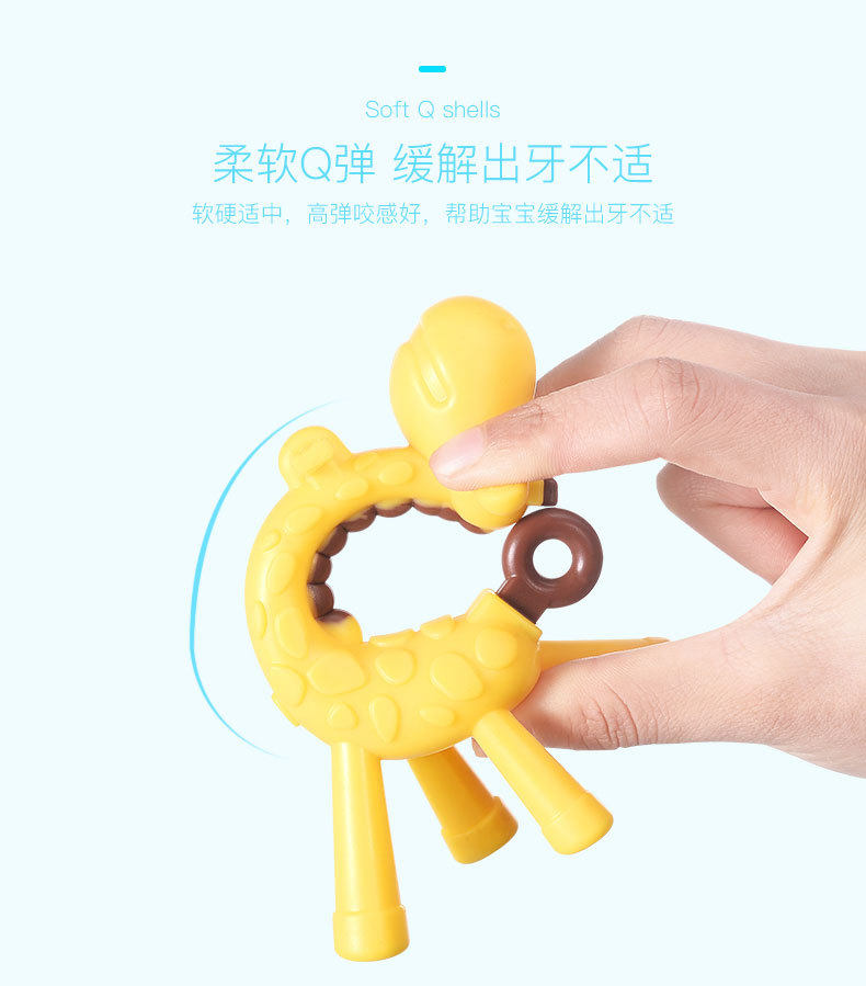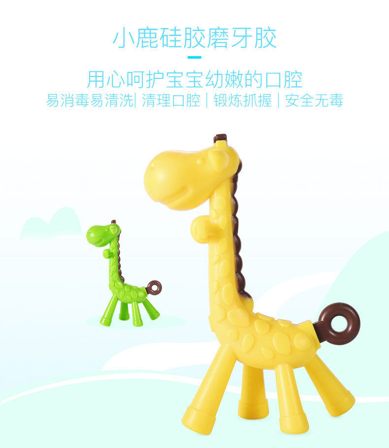 Small Deer Solid Tooth Instrumental Baby Baby Food Grade Silicone Gel Grinding Stick Exercise Hand Grip Snap and water cooking to disinfect high temperature