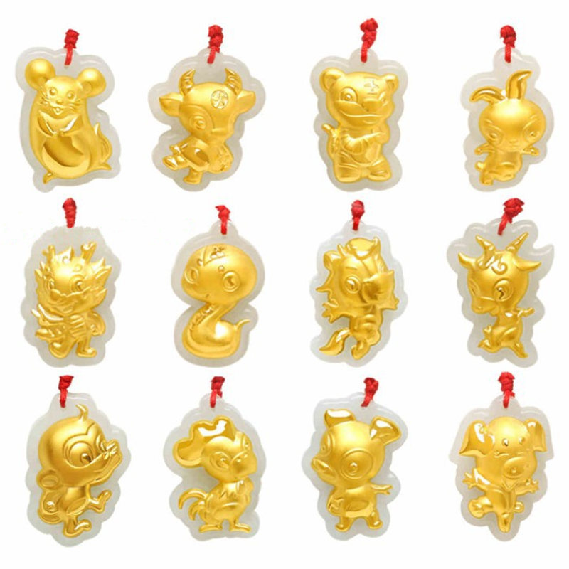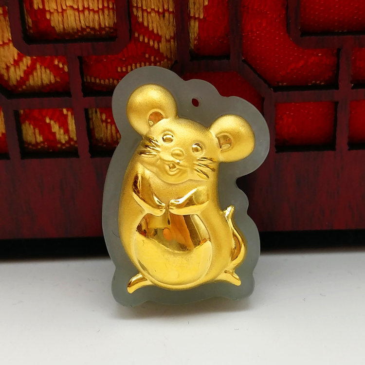 Gold inlaid with jade duozodiac pendant and Tian jade inlaid gold necklace ornament male and female child child child The Yupei