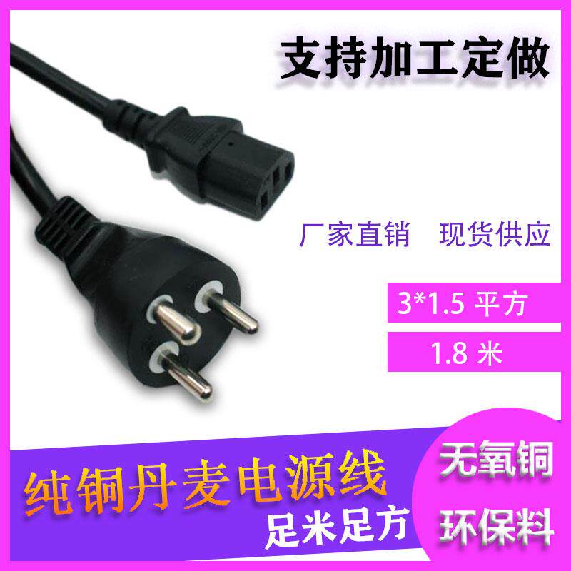 Pure copper Danish power cord 3*1 5 square 1 5 m with product suffix Danish three-core power cord with plug