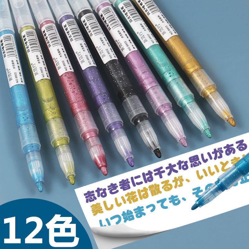 Flash gel pen fluorescent color hand account special pen Douyin web celebrity same set pearl silver double line outline pen metal marker for students to take notes marking key double color