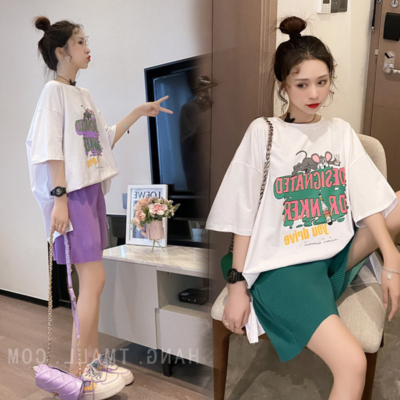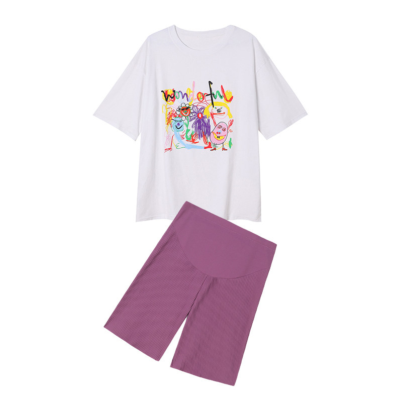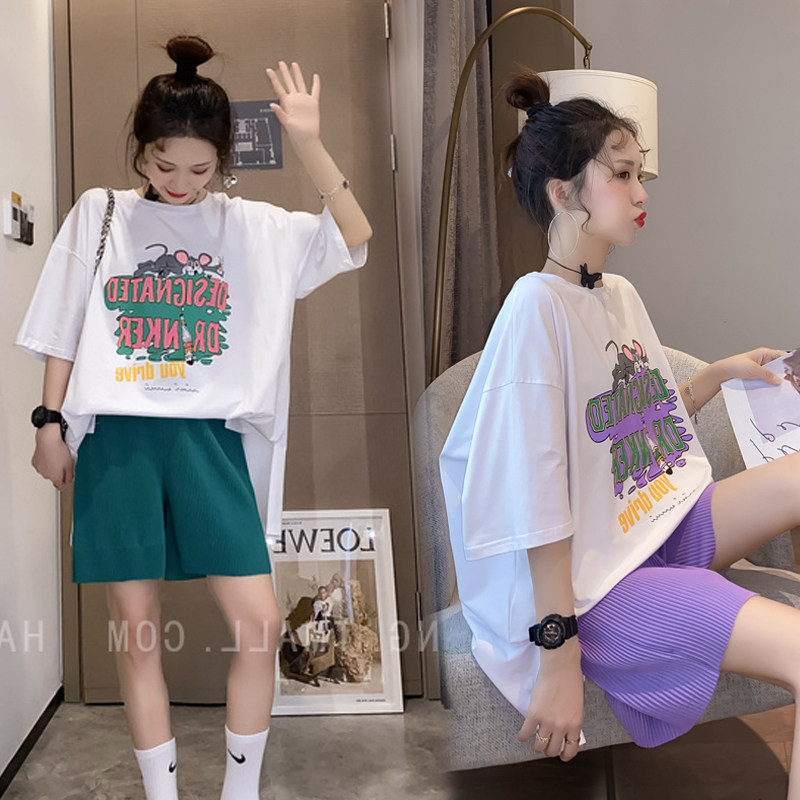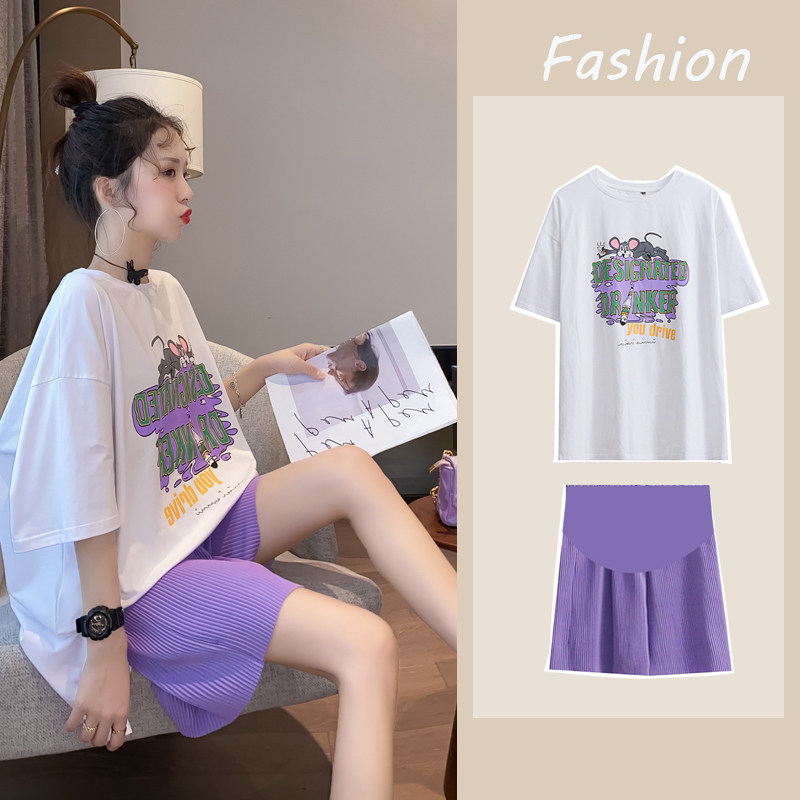 Maternity wear summer suit cotton short-sleeved t-shirt going out fashion 2020 summer trendy hot mom shorts net red two-piece suit