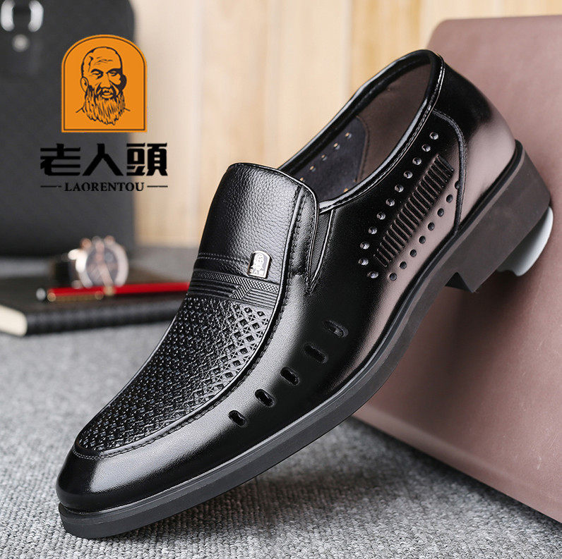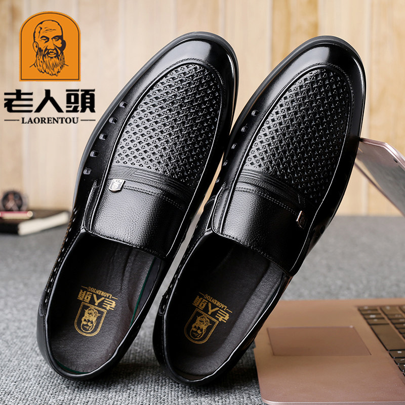Old man's head men's shoes leather brand high-grade leather autumn soft bottom soft leather soft face leather comfortable autumn single shoe soil