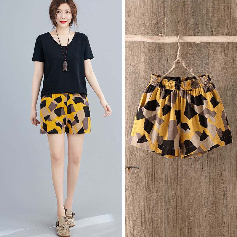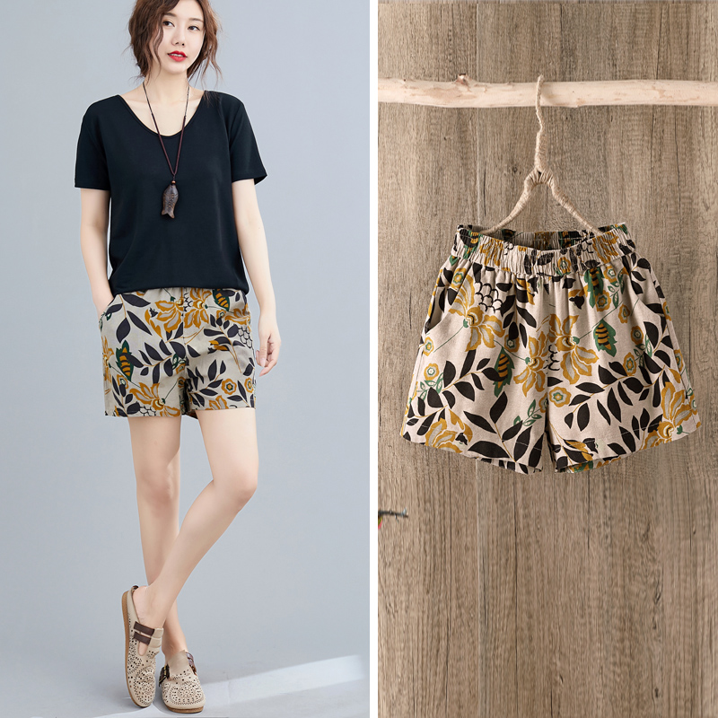 Cotton and hemp shorts women's summer loose high waist wear 2021 new elastic waist thin casual wide leg five-point pants hot pants
