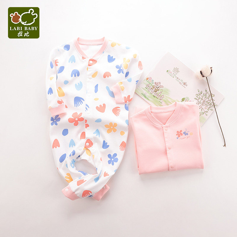 Rabi official flagship store Autumn newborn clothes Baby Pajamas Infant jumpsuit Hayi climbing suit 2pcs