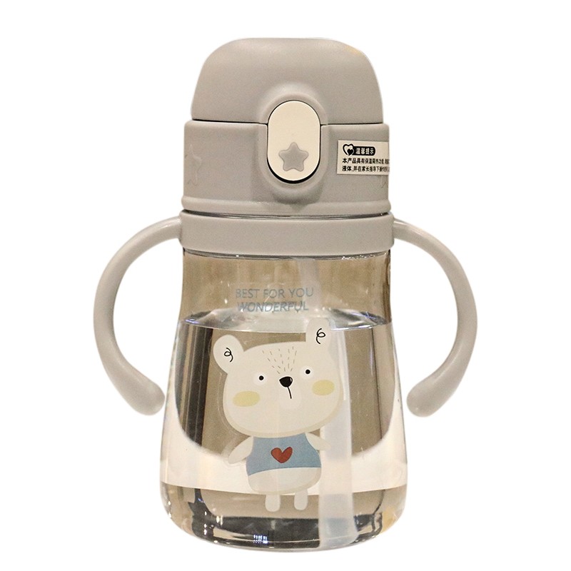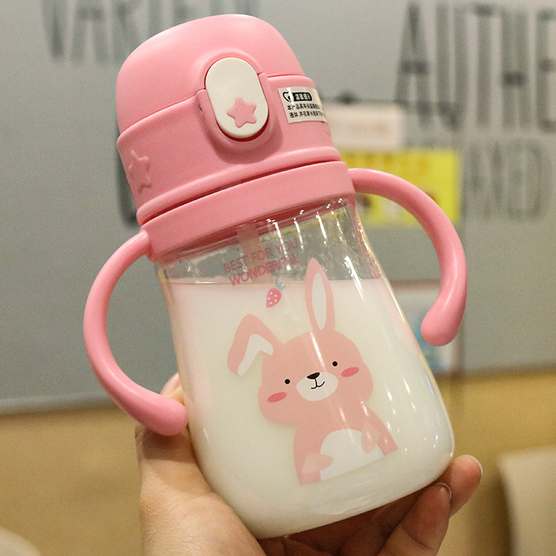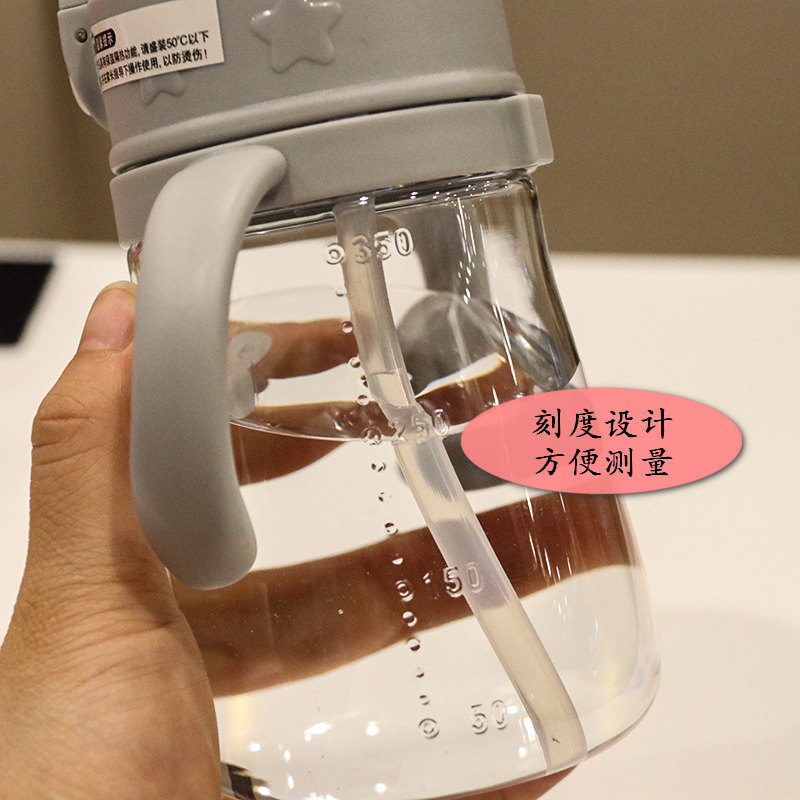 Double Handle Baby Grip Plastic Cup With Scale Bubble Milk Powder Child Cartoon Straw Cup Anti Fall Small Drink Water