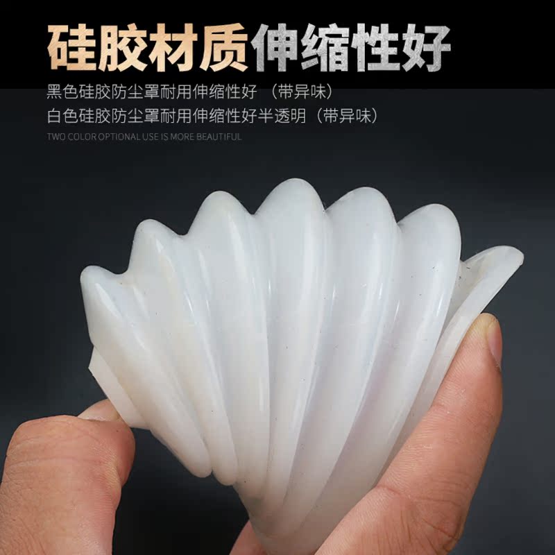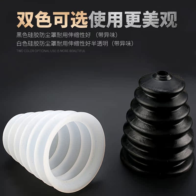 White dust cover, black dust cover connected to gray bowl, 1 white, 1 black, 1 white, 1 black, 4 white dust covers, 4 black dust covers, 2 white, 2 black