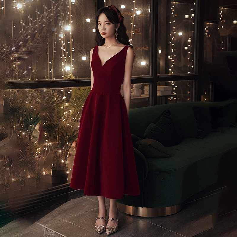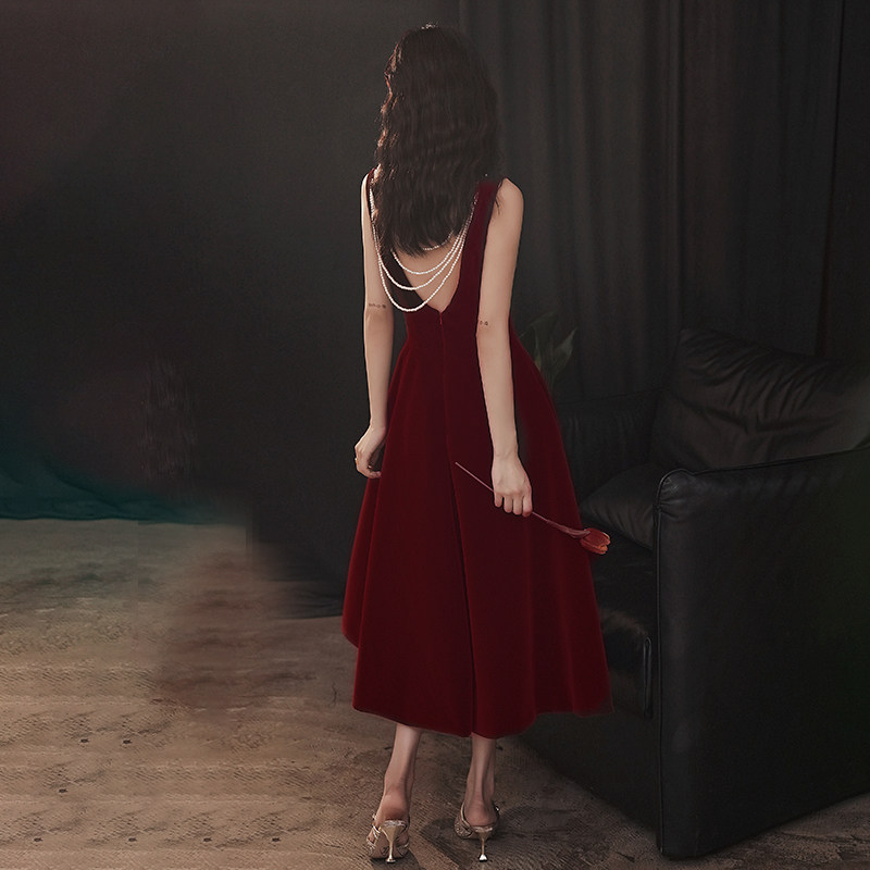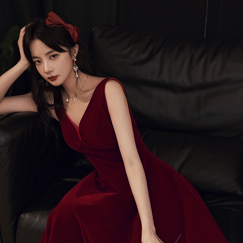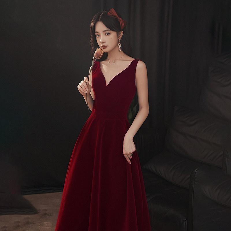 Toast clothing bride 2023 new wine red usually wearable velvet engagement fugitive princess evening dress dress