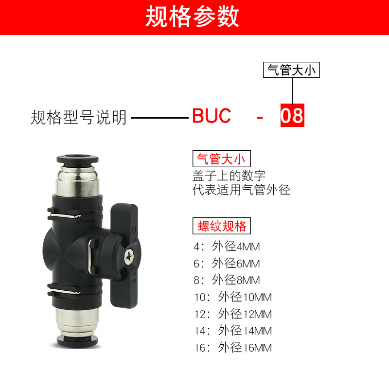 Pneumatic hand valve BUC-4 6 8 10 12mm quick quick quick-quick-quick-quick-quick-quick-quick-quick-insertion tracheovalve ball valve switch valve