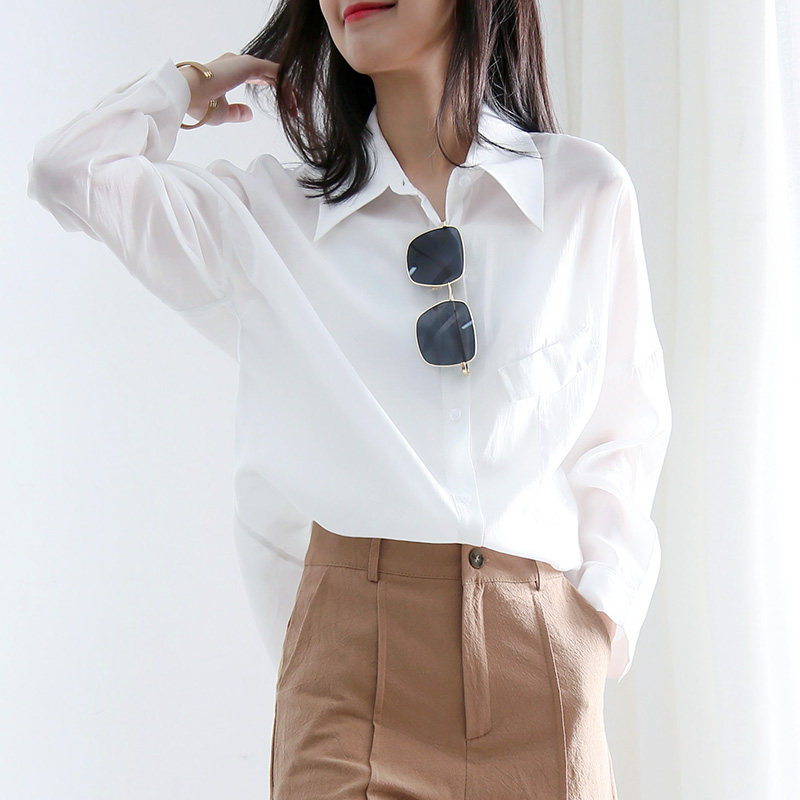2021 new white shirt women's summer thin Western-style shirt design niche light cooked tide long-sleeved sunscreen shirt