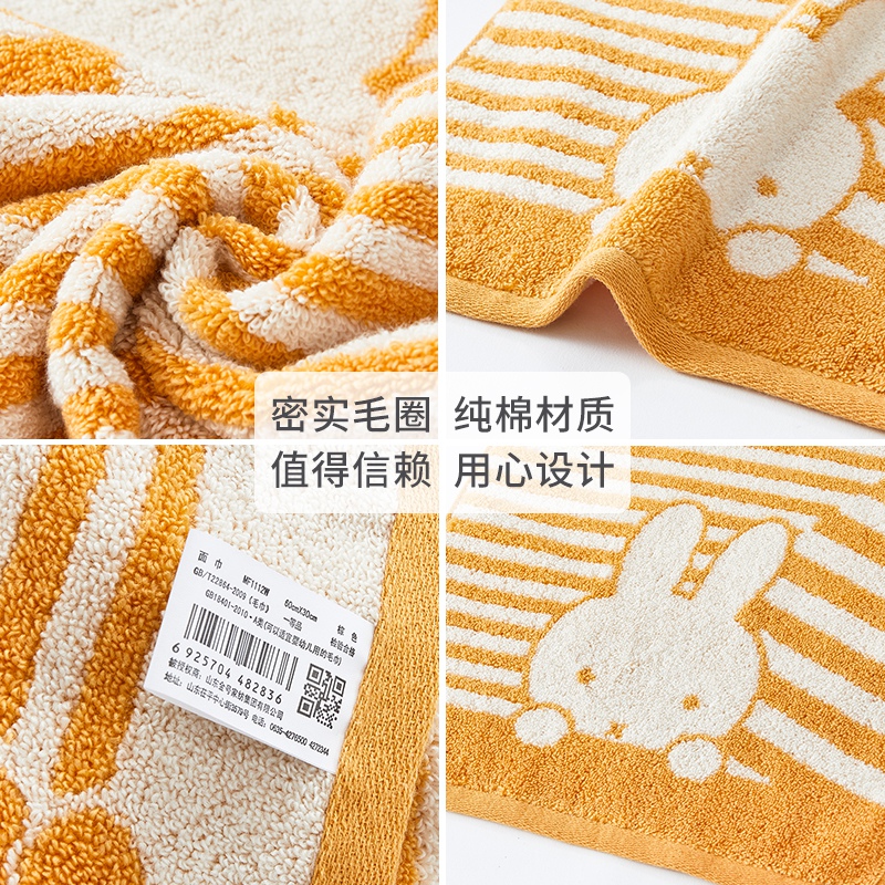 Gold Miffy Rabbit Towel Pure Cotton Cute Cartoon Primary School Student Medium Towel Household Handkerchief Wipe Head Wash Face Couple Pair