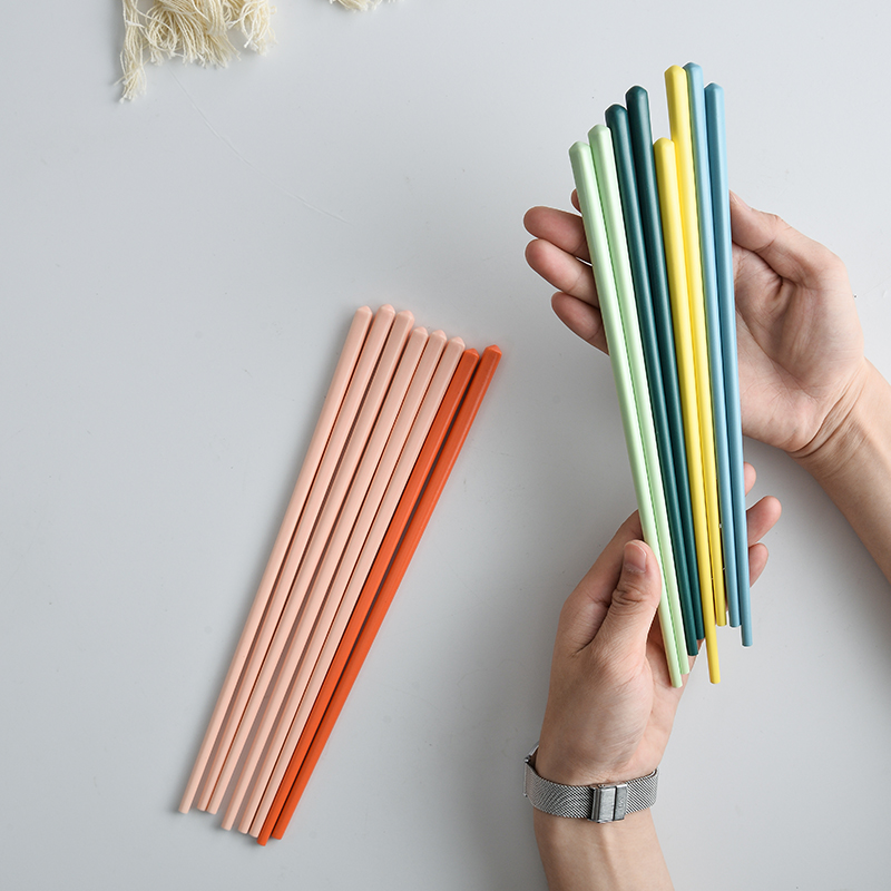 Five pairs of ten pairs of colored ceramic chopsticks are not moldy, household non-slip, mildew-proof, one person, one chopsticks, antibacterial and high temperature resistant delivery spoon