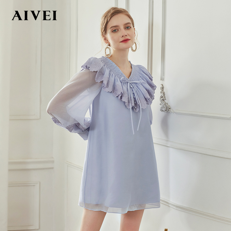AIVEI Hinca Ai Weiwei Spring new V collar embroidered lotus leaf side H version of the ocean M0560168