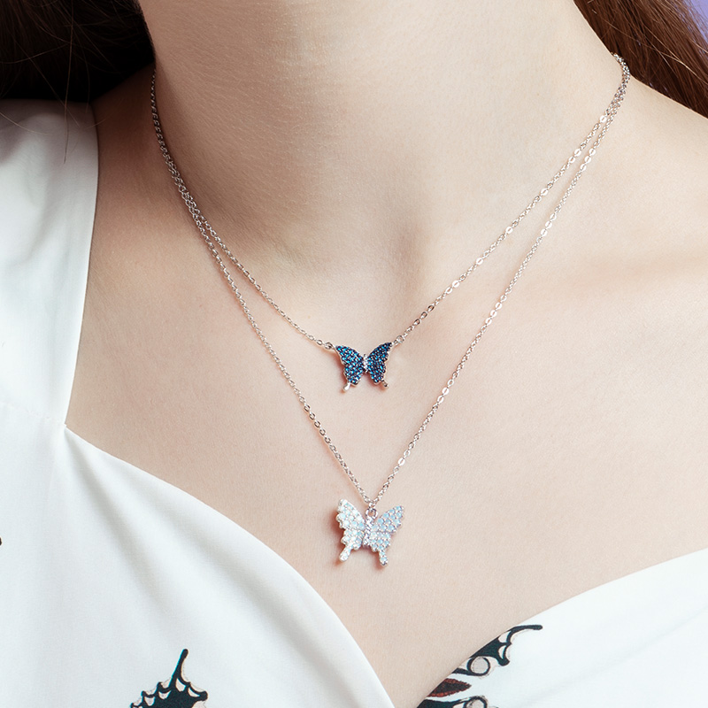 HEFANG JEWELLERY BUTTERFLY LOCK BONE CHAIN 925 PURE SILVER FEMALE INS FRESH BRIEF ABOUT WIND BUTTERFLY PENDANT NECKLACE