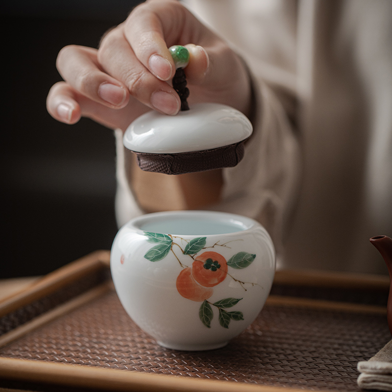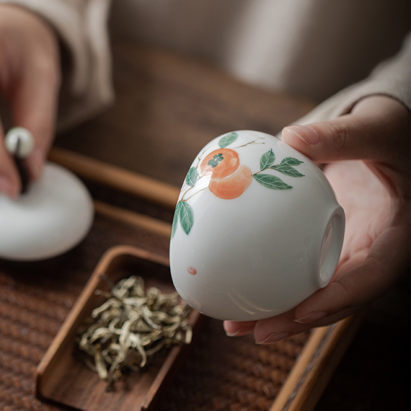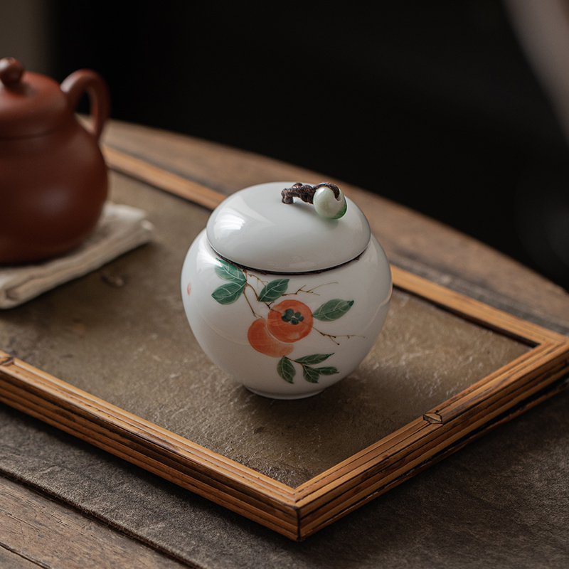 Hand drawn tea cans small pin portable household ceramic mini-sealed storage tank tea storage tea small jar