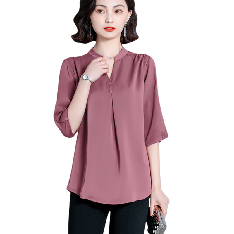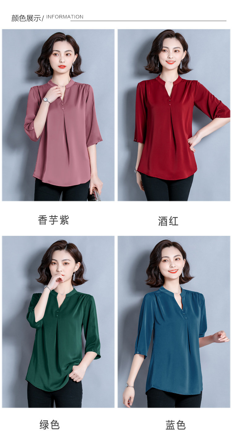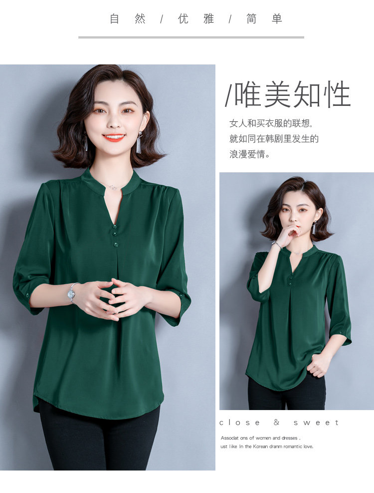 2021 new five-point sleeve solid-color silk t-shirt women's autumn fashion mom V-neck belly mulberry silk medium-long sweater