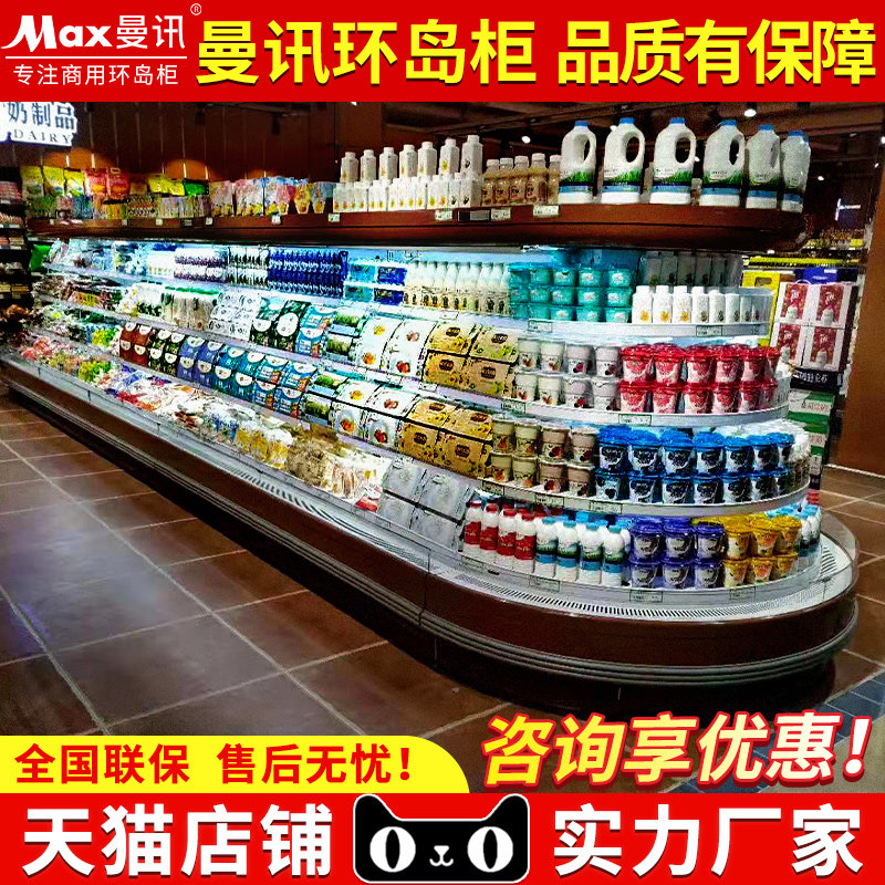 Manent Ring Island Cabinet Wind Curtain Cabinet Display Cabinet Supermarket Four Sides Ring Refrigerated Freshness Preservation Cabinet Yogurt Fruit Middle Island Cabinet