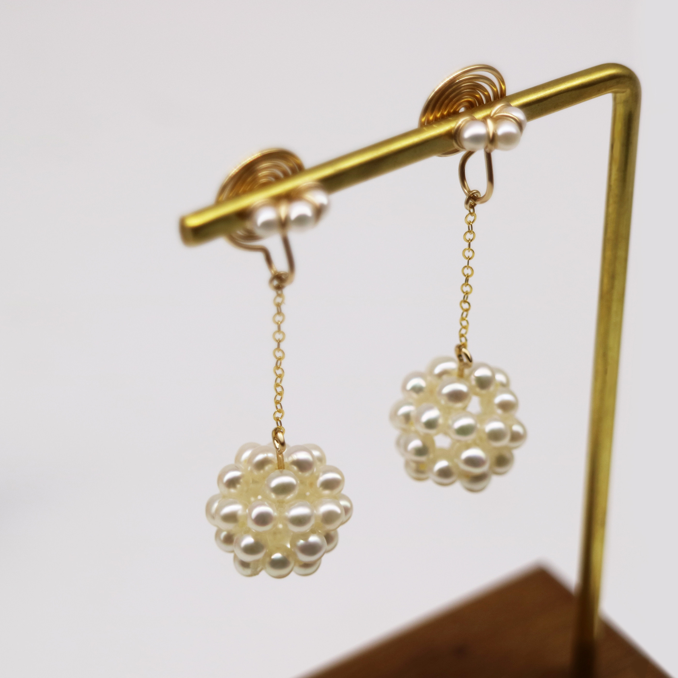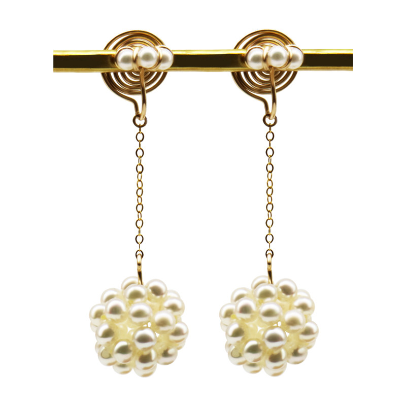 Sweet freshwater pearl ball ear clip painless super strong clip force 14k bag no ear hole mosquito coil ear clip