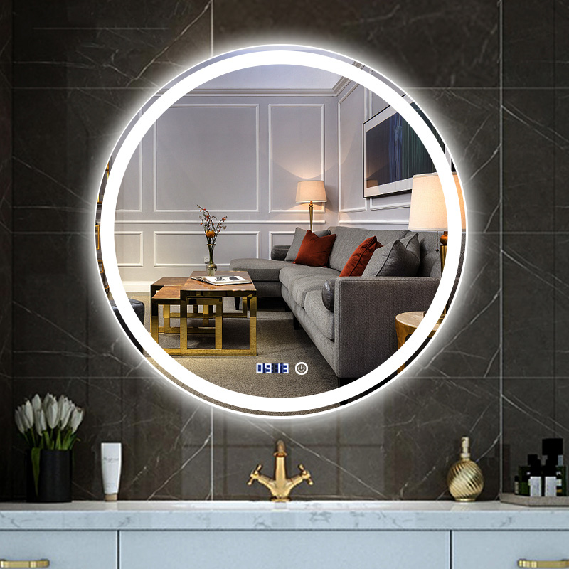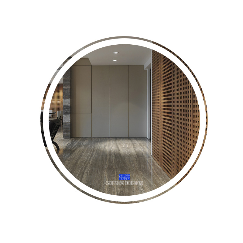 Smart round makeup mirror toilet bathroom dressing room touch screen with light led anti-fog bathroom mirror hanging wall