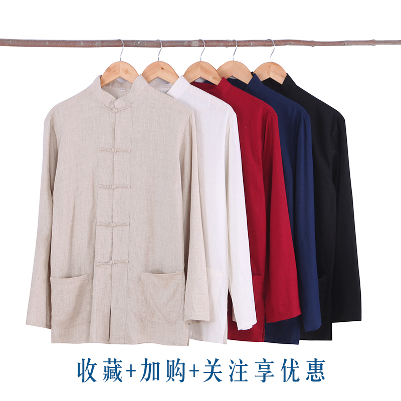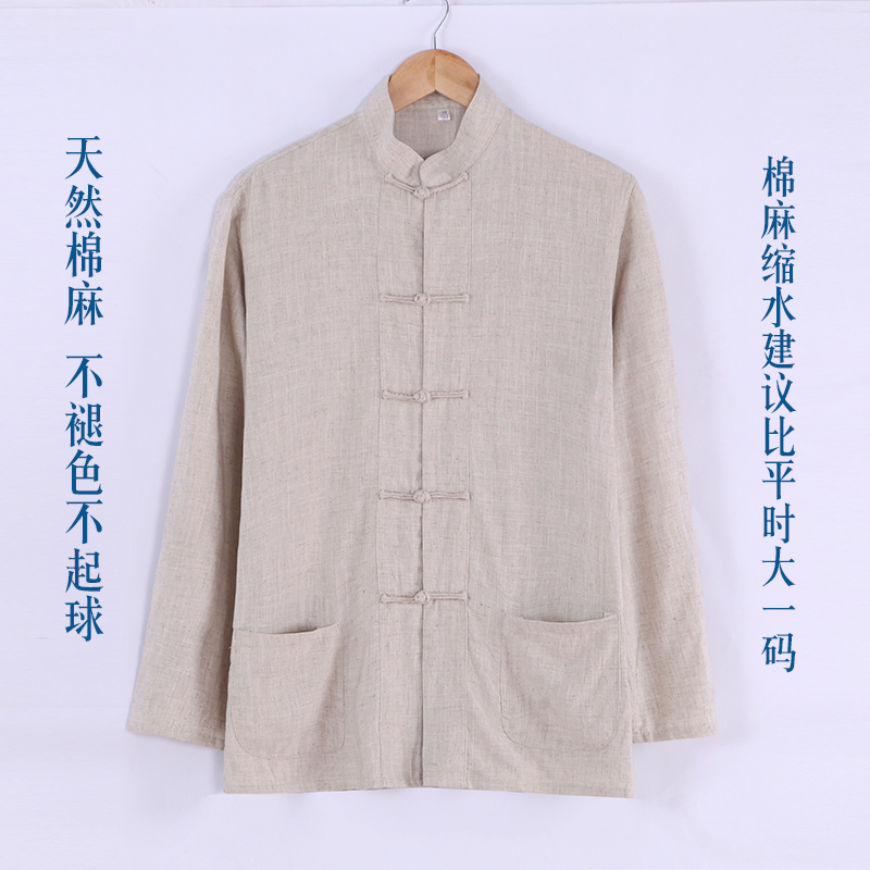 Summer Old Age Dondress Male Long sleeves Grandpa Summer Clothing Cotton Linen Thin father disc Buttoned Blouse China Wind Seniors Clothes