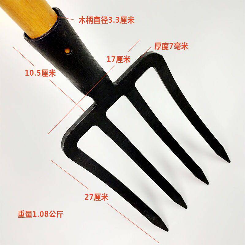 Agricultural fork Earth-turning artifact Ripper Four-strand steel fork Four-tooth manganese steel manure fork Wasteland-turning digging onion fork Garbage fork
