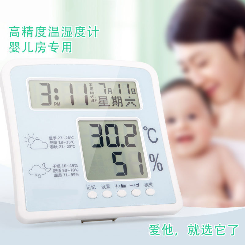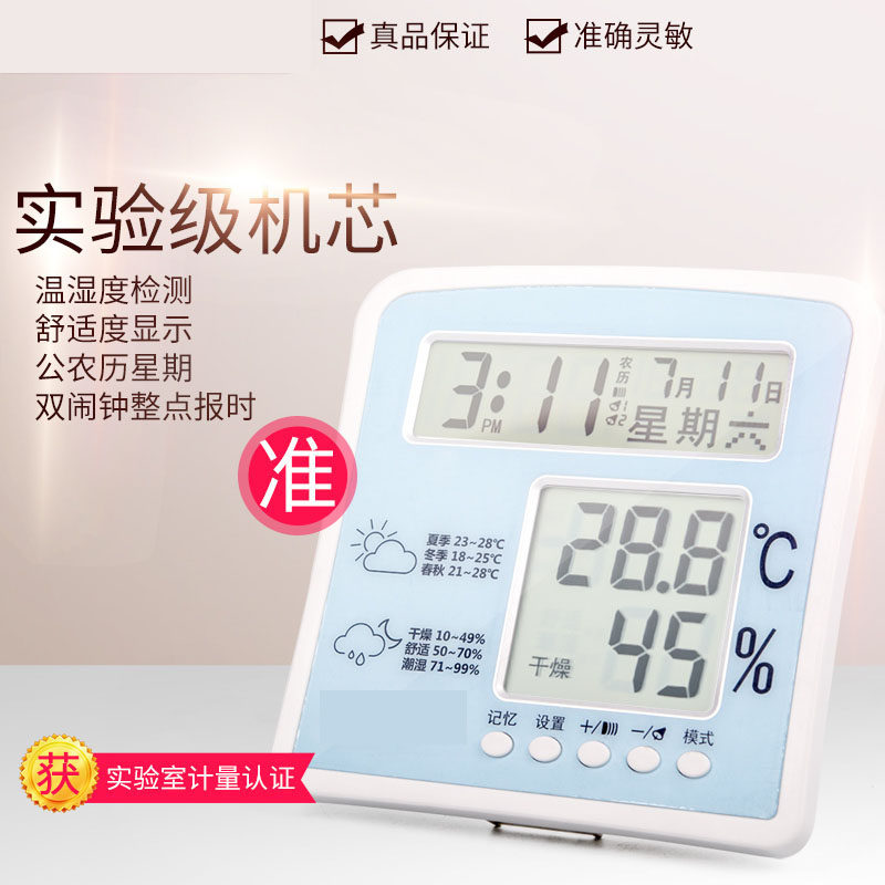 Large screen electronic humitomemeter home baby room indoor high precision thermometer with double alarm clock