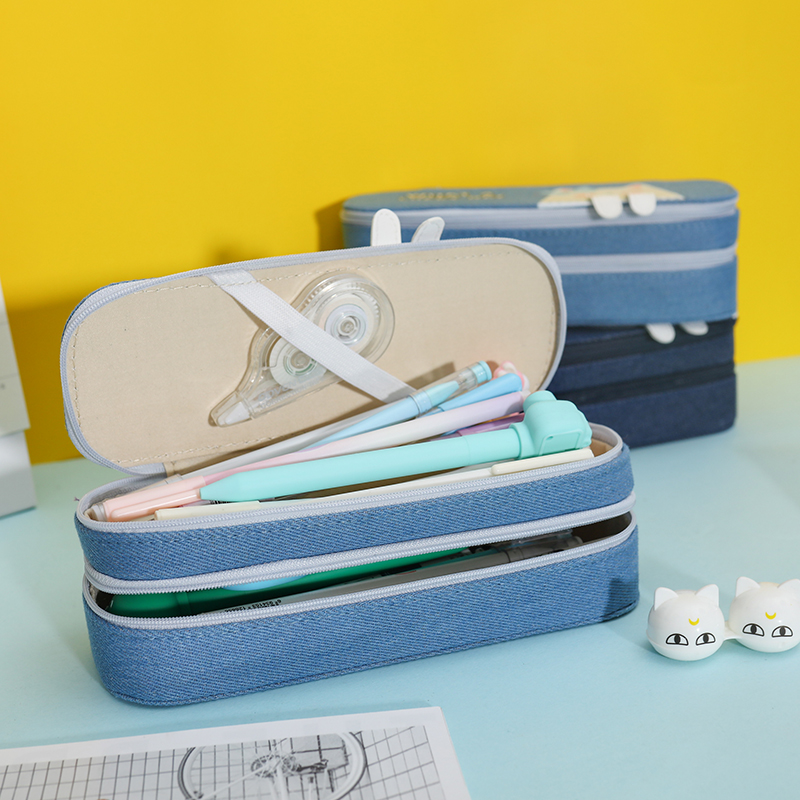 Douyin net red pen bag female ins tide cute pencil case large capacity double-layer stationery box junior high school pupils children kindergarten girl heart boy simple pen box stationery bag creative multi-function
