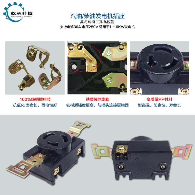 Gasoline and diesel generator accessories 2KW3KW5 6 5KW8KW220V three-pin single-phase pure copper three-hole plug socket