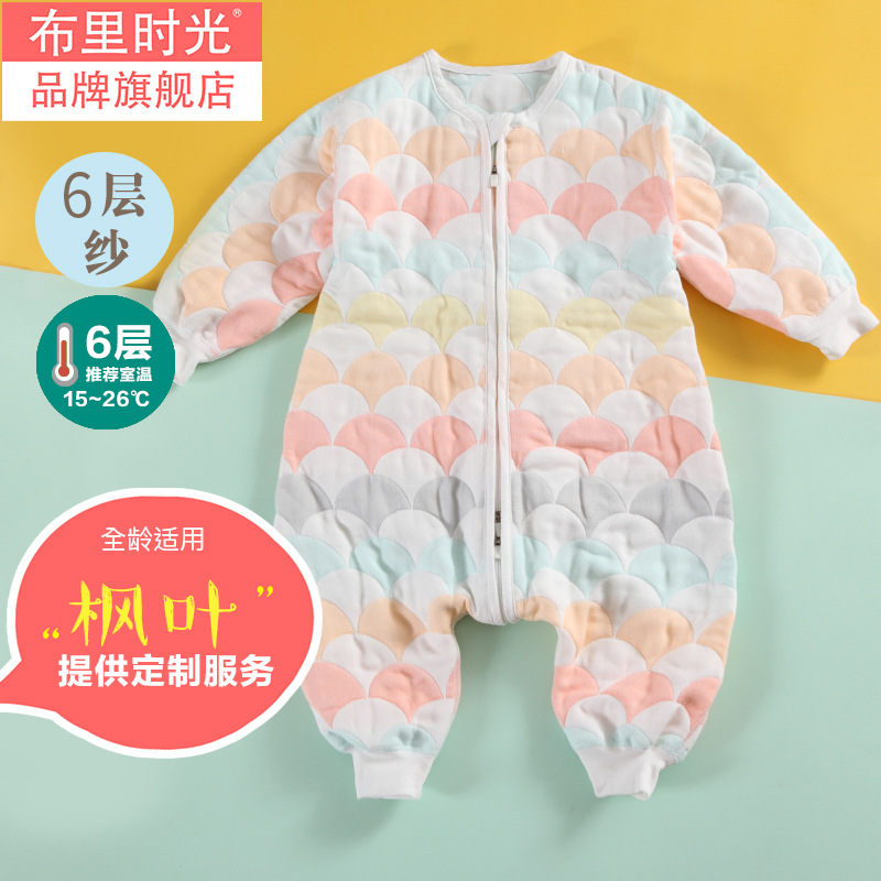 A class cotton 6 layer gauze boneless split leg sleeping bag children infant 60 strands of yarn crawling suit 8 layers