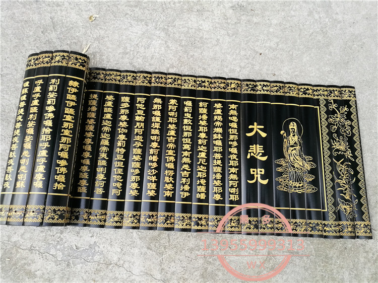Bamboo slips carved characters scriptures teach recitation gifts believers Heart Sutra Great Compassion Mantra set brocade box bag