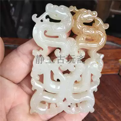 Dragon and phoenix hollow jade wall hanging pieces Chu and Han Shuanglong Shuangfeng antique ornaments Jade Bi old jade Outer Mongolia material pretty old jade