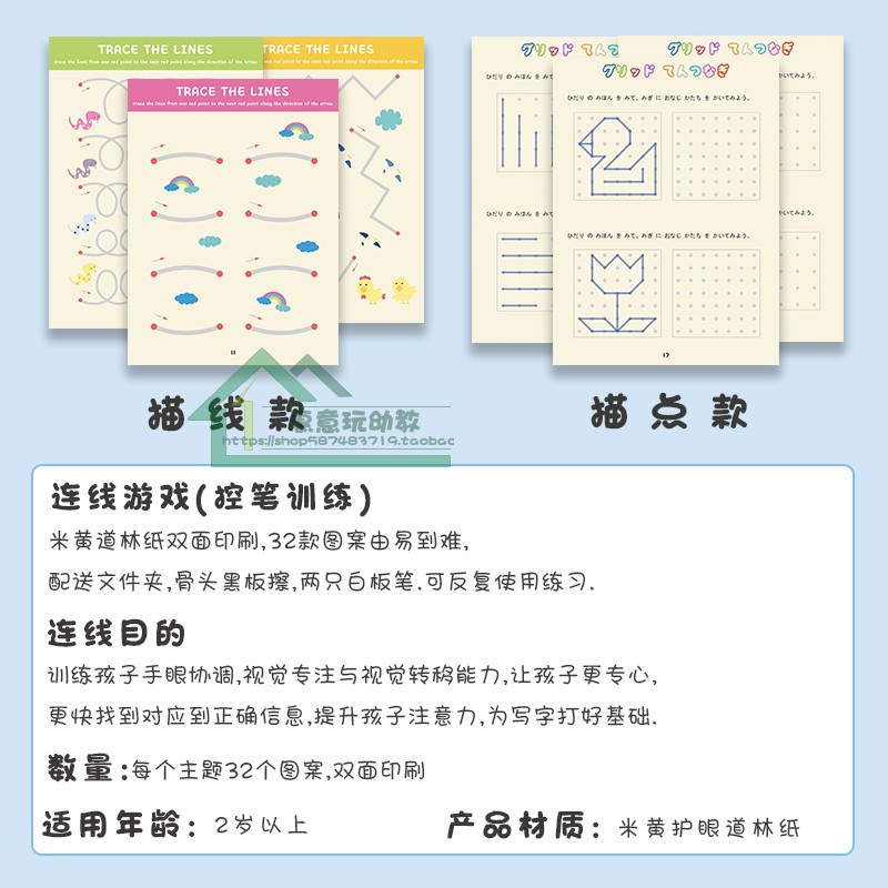 Kindergarten puzzle area control pen with dots and draw lines to train children's fine motor exercises to exercise pen and focus on playing teaching aids