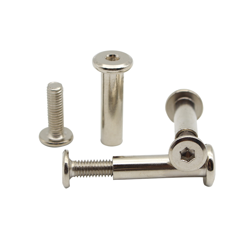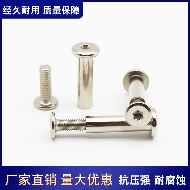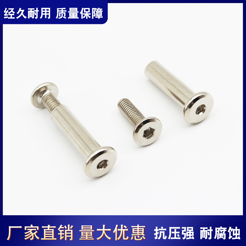 M6M8 nickel plated large flat head hexagonal pair of lock screw splint nut furniture primary-secondary nail butt screw
