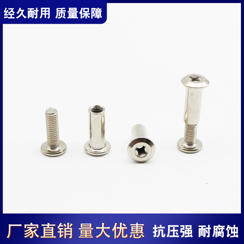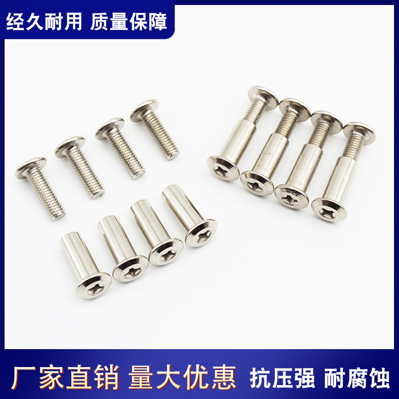 Large flat head cross to lock plated nickel pair of knockdown plywood nuts combined with mother nail screw M6M8 furniture primary and secondary nails