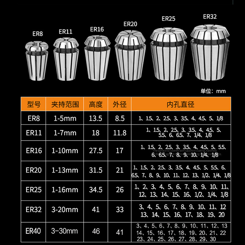 Remarks are required when placing an order ER11(3-7mm) ER16(3-10mm) ER20(3-13mm) ER25(3-16mm)