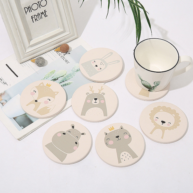 Diatom mud coaster cartoon cute tea coaster absorbent non-slip mat round square creative Nordic customizable pattern