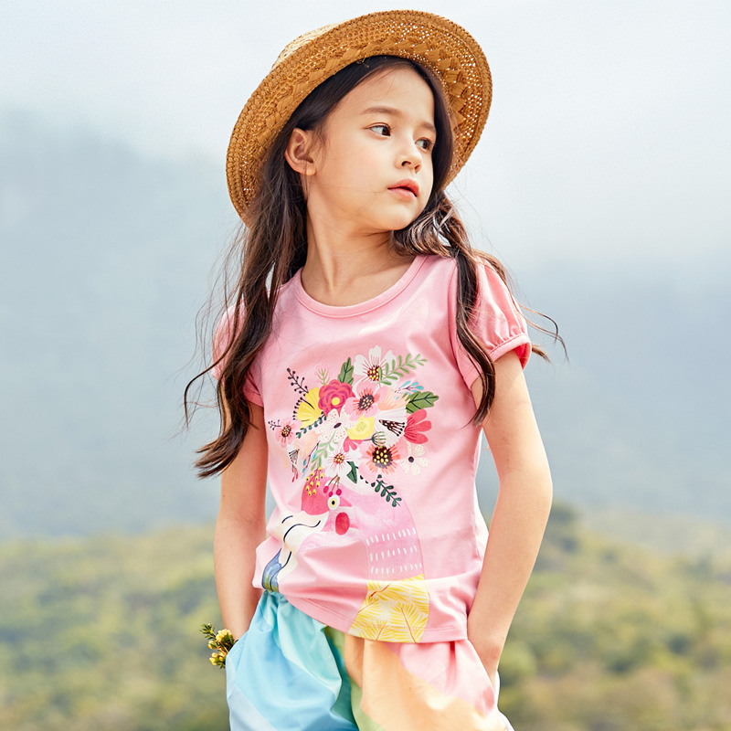 Girl's T-shirt short sleeve child cartoon blouse summer dress female great boy foreign pie cardiovert kid T-shirt child clothing thin