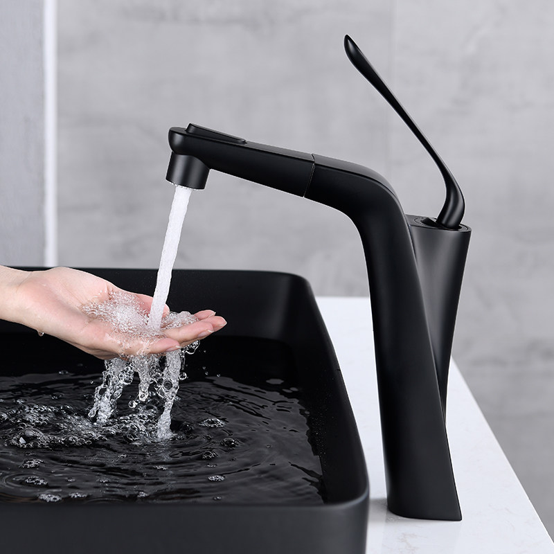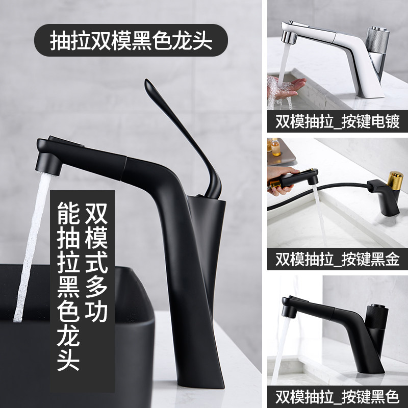 Black washbasin pull-out hot and cold water faucet Bathroom table basin sink basin bath room constant temperature faucet