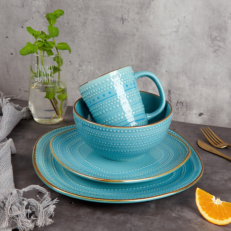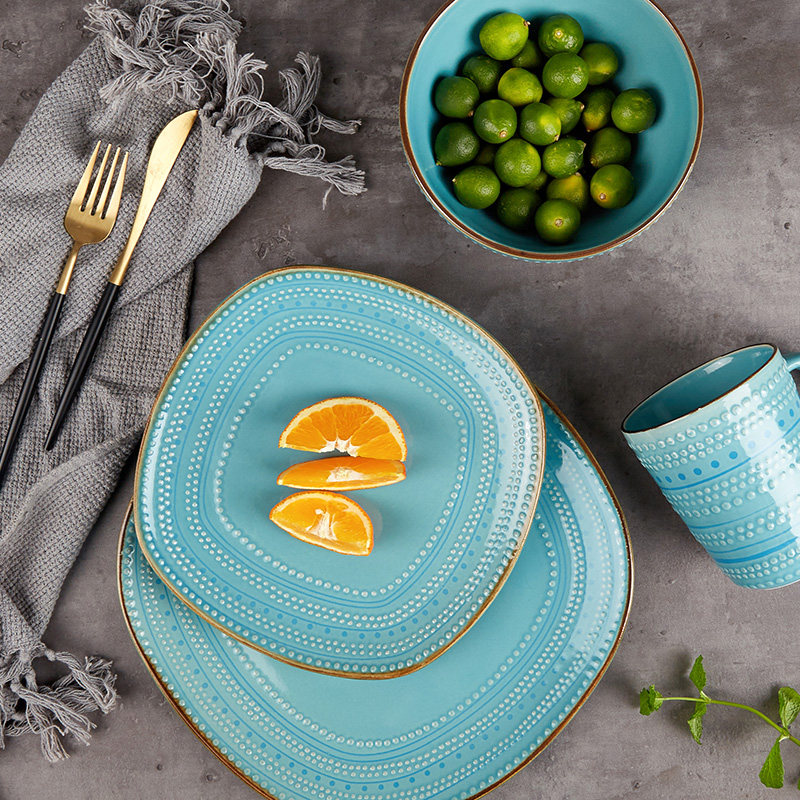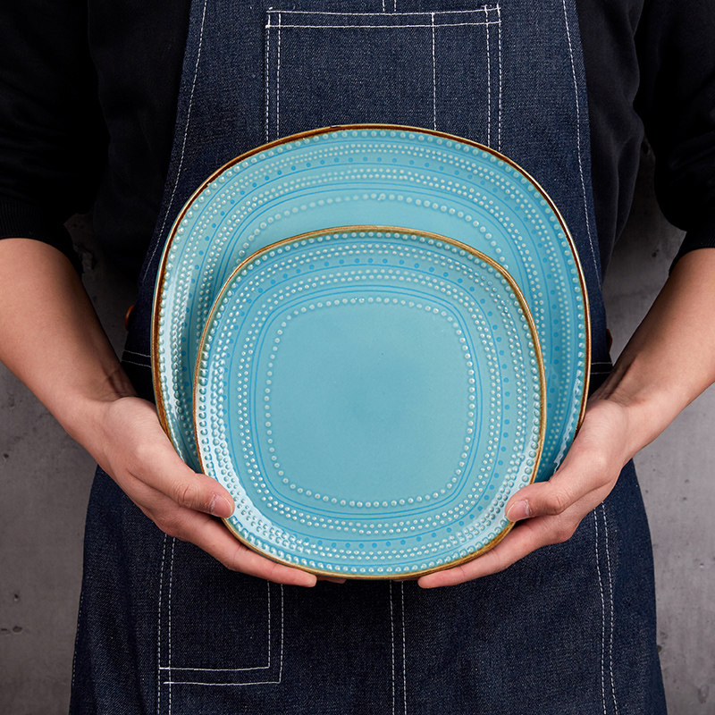 Yuquan Ceramics Creative Western Tableware Steak Plate Home Simple European Plate Embossed Retro Foreign Trade