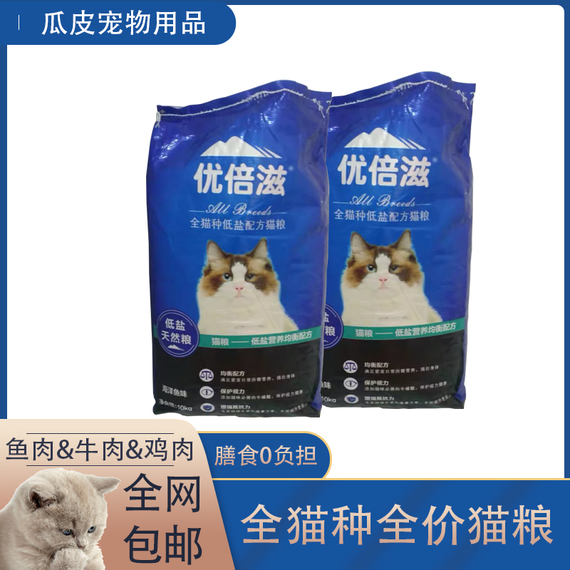 Youbeizi cat food 20 catties marine fish and beef flavor adult cat kitten general-purpose cat staple food hypoallergenic whole stage