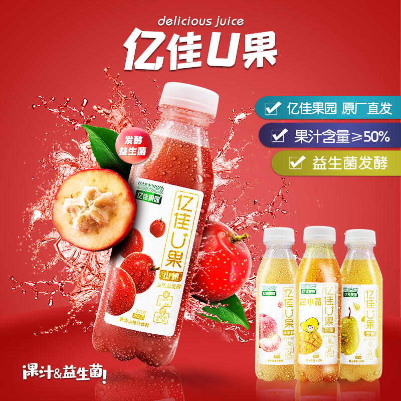 Yijia Orchard U Fruit Hawthorn Juice Mango Juice Pear Juice Peach Juice Compound Probiotic Drink 380ml*15 FCL