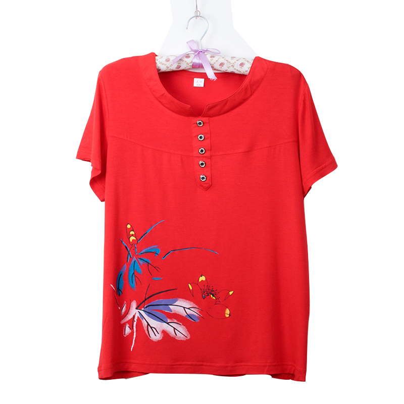Middle-aged women's short sleeve t-shirt large size loose fat mother dressed in summer dress new Model half sleeve vest