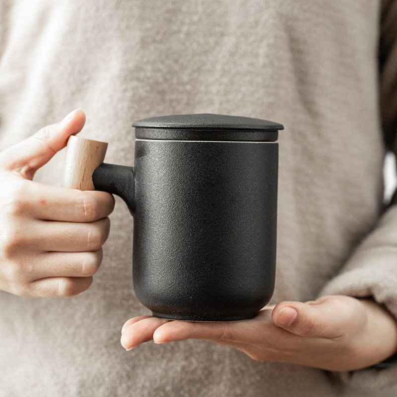 Creative wooden ceramic office cup cup with cover filter tea separate Mark cup custom LOGO personal cup