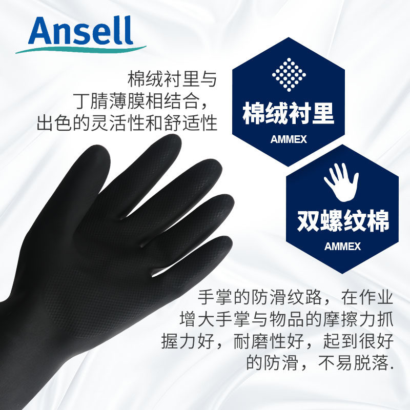 Ansell Ansell87-950 rubber anti-chemical laboratory anti-acid and alkali household protective labor insurance work gloves