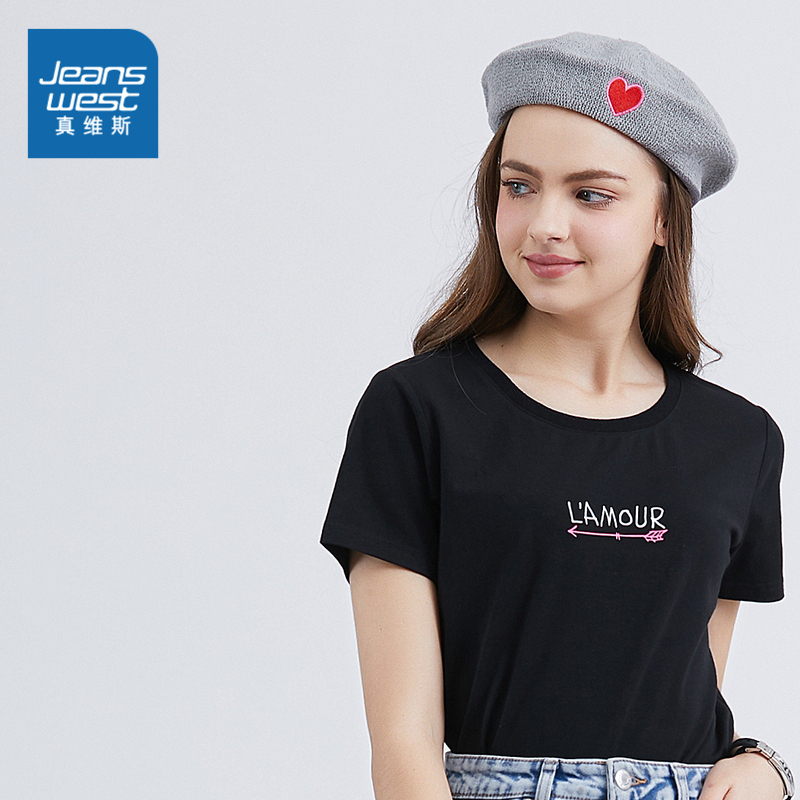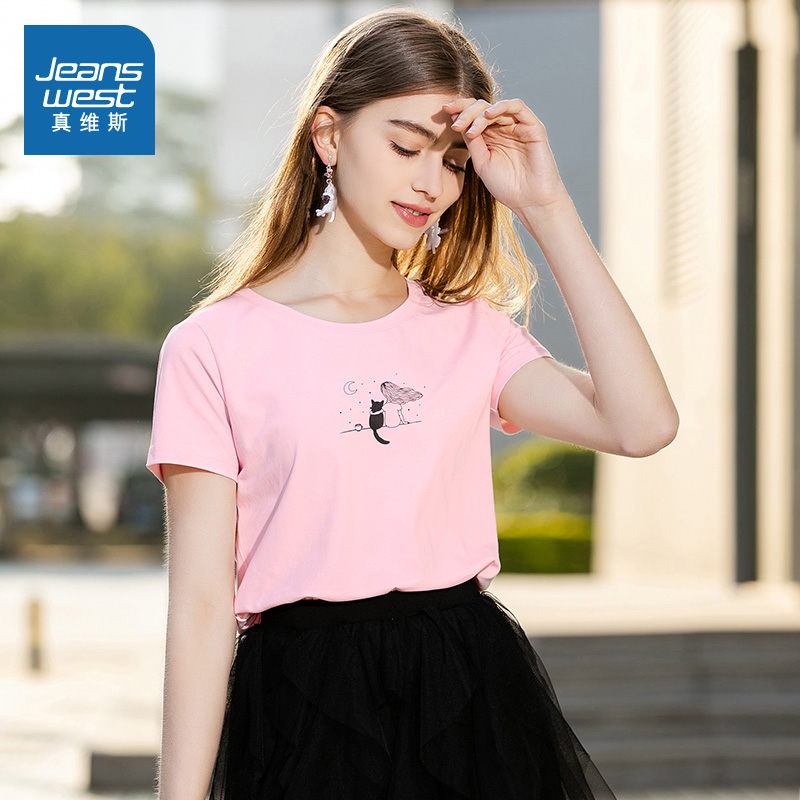 D2 Jeanswest bottoming shirt female spring and summer student round neck short-sleeved rainbow T-shirt half-sleeve slim slim casual ins