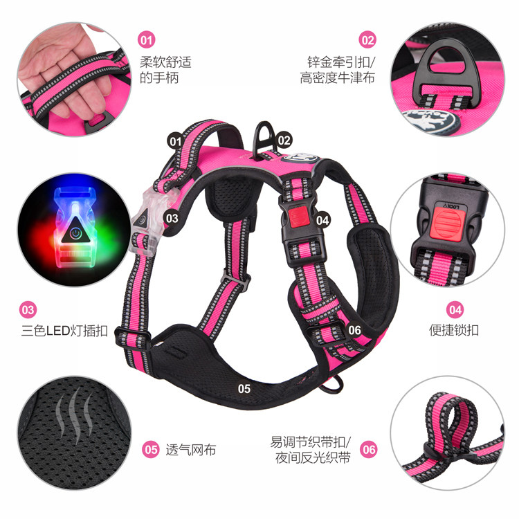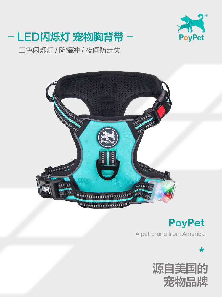 PoyPet tri-color LED scintillating light inserts Dogs Traction Night Vision Luminous Chest Braces Pet Pass Dog-Taobao